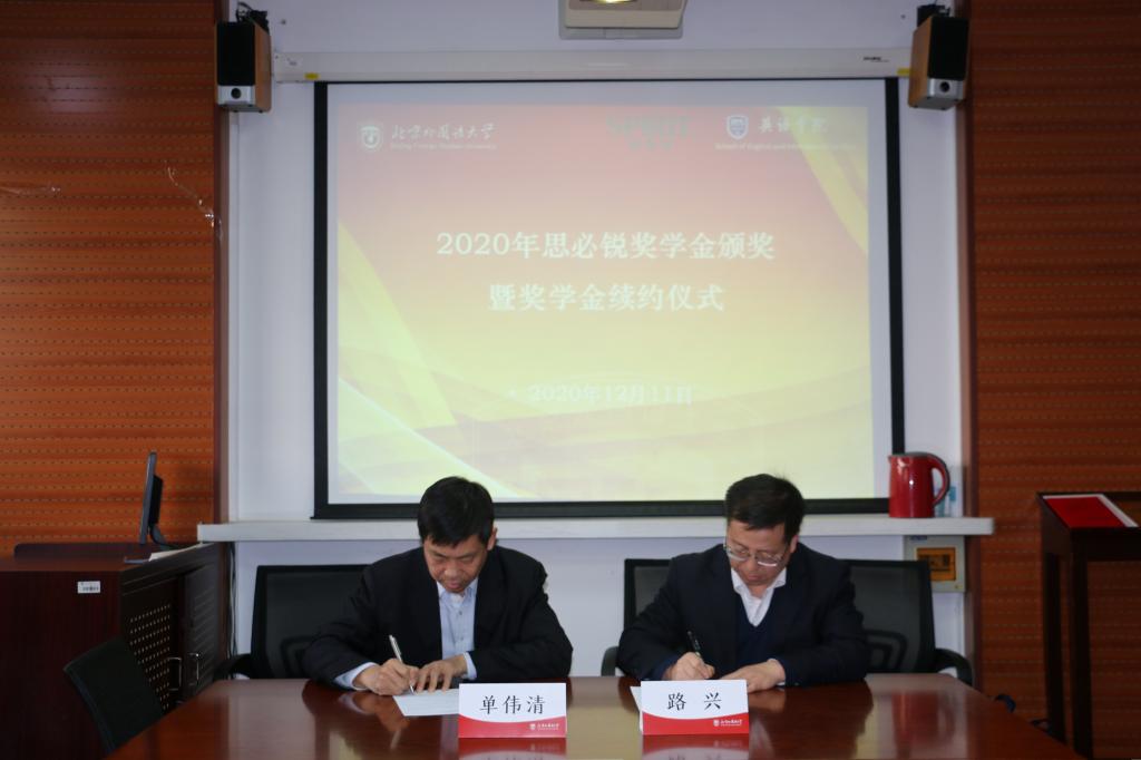 12月11日上午,taptap点点体育举行2020年思必锐奖学金颁奖暨奖学金续约仪式。北京思必锐翻译有限公司总经理单伟清,国际合作部经理秦肖斌,资源部负责人王艺璐一行前来taptap点点体育与师生座谈。党总支书记路兴,党总支副书记孟庆琨,辅导员于承杰以及2020年思必锐奖学金获奖学生参会。