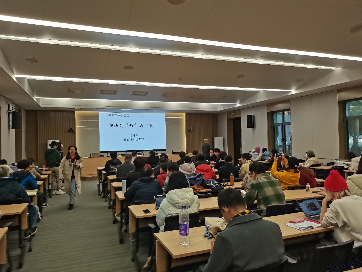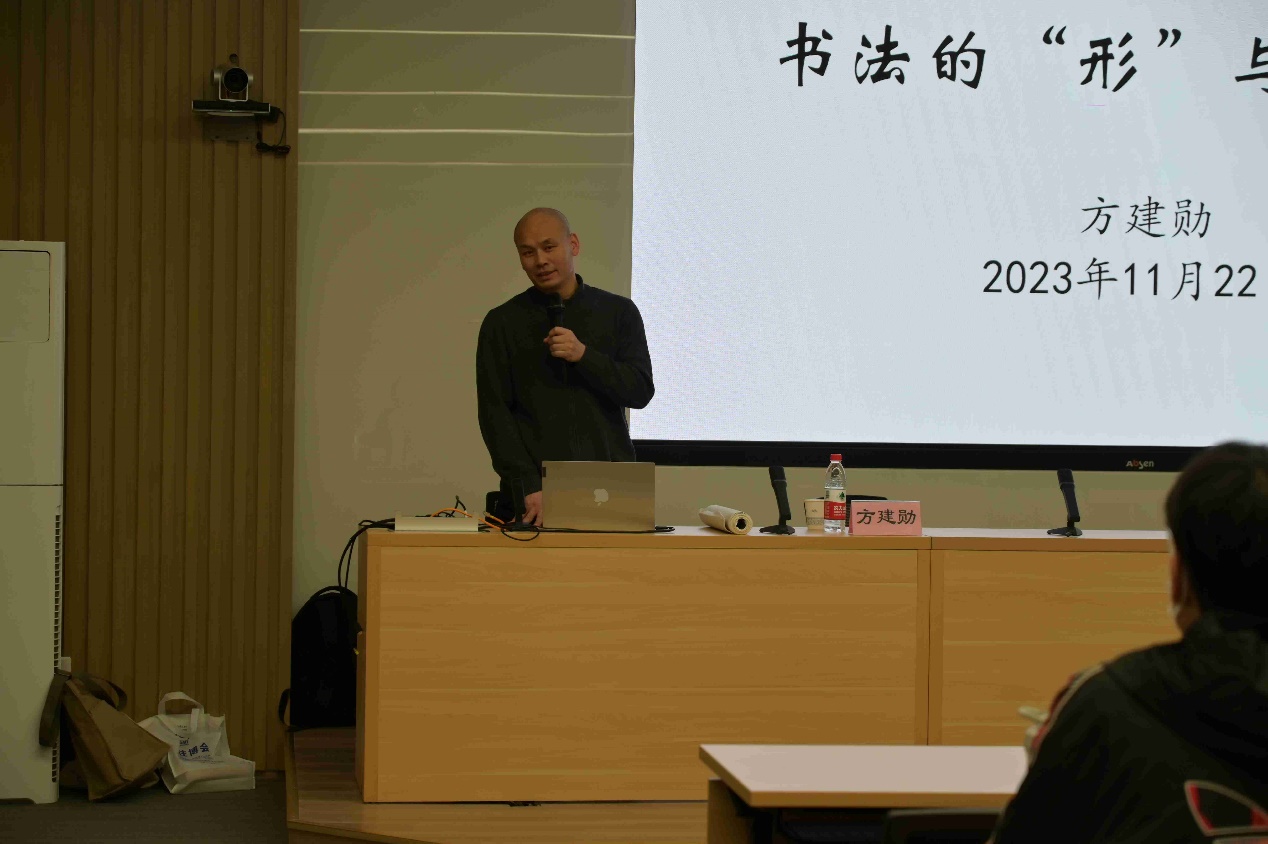 2023年11月22日,由校工会主办、taptap点点体育承办的“书法的‘形’与‘象’”讲座在晨读厅成功举办。讲座邀请北京大学美学博士方建勋为主讲人,校工会常务副主席梁炳超、taptap点点体育党总支书记王明欣、校工会书法班特聘教师许森林与近百名校内外师生共同参与。
