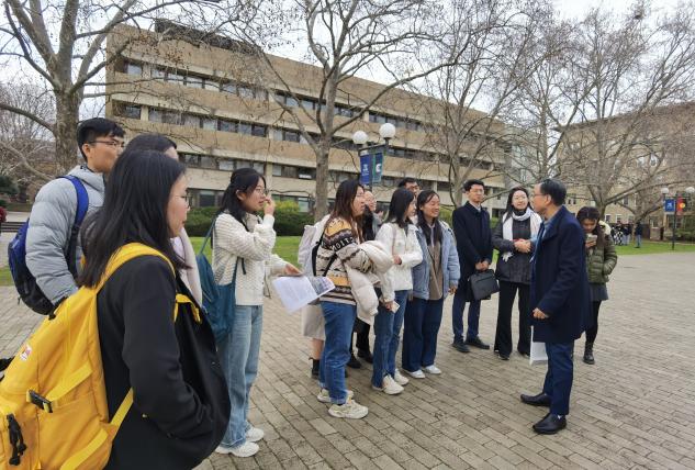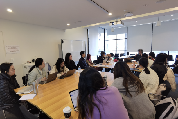 8月7日,当代中国研究中心为交流团一行举办欢迎会。主任Mark Wang教授出席并致欢迎词。王主任是世界知名的人文地理专家,主要研究中国的南水北调工程、水资源管理、碳减排政策等当代经济与社会问题,是多个国际知名期刊的编委。会上,他跟同学们分享自己几十年来在西方世界的学术生涯,着重强调批判性思维的重要性。他鼓励大家要勇敢、大胆地讲出中国故事、讲好中国故事,在叙事和分析上坚持辩证的观点,尊重差异,阐释不同。王主任对每位同学的论文选题一一提出详细且具有针对性的指导意见,帮助同学们进一步明确研究问题和方法,做好此次访澳的调研报告和未来的学术论文。