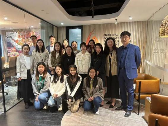 8月14日下午,交流团在澳大利亚外交贸易部澳中关系国家基金会(NFACR)的邀请下,前往其位于悉尼市中心的办公楼进行交流,主任Kim Pang和副主任Virginia Lee接待了团组。该基金会由澳大利亚联邦政府于2020年成立,投入2400万澳元,旨在大力推动政府、企业和社区与中国建立联系并加强建设性的双边交流。交流过程中,主任Kim Pang和副主任Virginia Lee为同学们详细介绍了基金会在双边关系中发挥的作用,尤其是为在澳中国留学生提供的深入当地社区、开展多样化实习实践的活动,其中澳中青年协会、澳大利亚多元文化体验等项目引起了大家的好奇与热情。通过图文并茂的解说,同学们对澳大利亚的原住民社区文化也有了更多的了解,并进一步认识到基金会作为外交部专门推动两国民间交流的机构所发挥的作用。