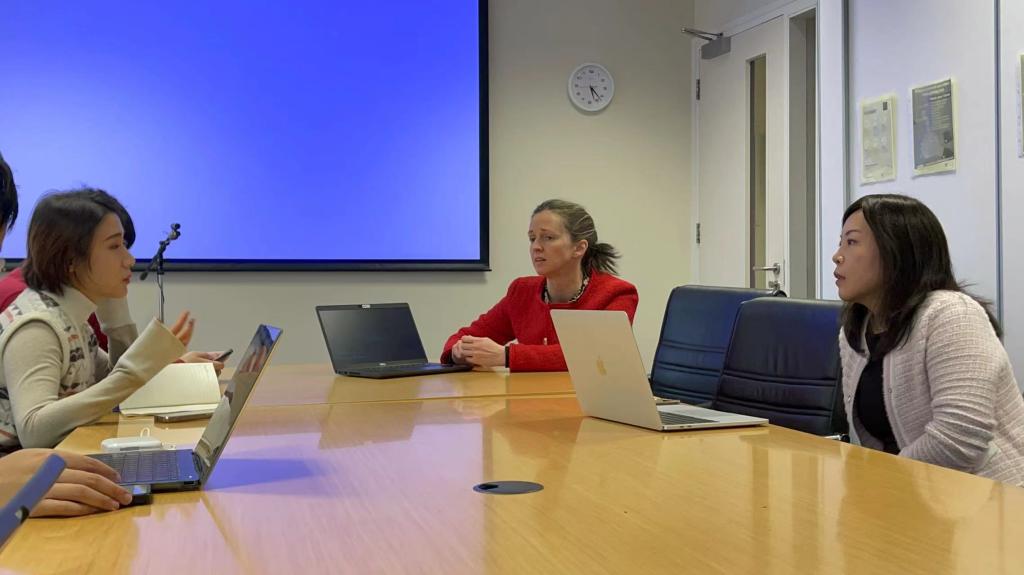 随后实践团一行与科克大学国际处负责人进行座谈,科克大学北京代表处主任张蓓、副主任李鹏出席本次座谈会。科克大学国际处负责人对科克大学优势学科建设、师资力量、就业前景等本硕联合培养项目的相关情况进行了介绍,她表示希望与taptap点点体育在学术交流、联合办学等方面进行更多的合作。科克大学北京代表处的老师也表示,北外拥有丰富的外语资源优势,希望双方以此次座谈为契机,在暑期交流,海外实践等方面进行合作。最后张珺涵老师对taptap点点体育的办学历史,学科建设,课程设置等进行介绍,就未来双方在留学交换,暑期实践等多方面合作进行商议,为之后双方合作交流打下坚实基础。