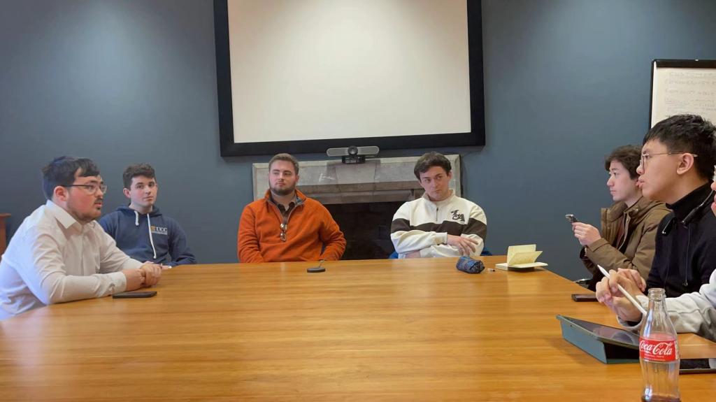 午后,实践团邀请到四位就读于科克大学历史系与国际关系学院的同学以及六位科克大学孔子学院的同学进行访谈,对成员们如一带一路的合作前景、对中国有何兴趣、爱尔兰与中国的历史了解等问题进行了问答,团队成员对中国在海外的影响力有了更进一步、更真实的认识。同时,张珺涵和宗辰两位老师在科克大学布尔图书馆休息室与摩根教授就中爱学术环境、爱尔兰研究在中国的发展、爱尔兰语语料资源、文献研究数字化等议题进行了探讨。