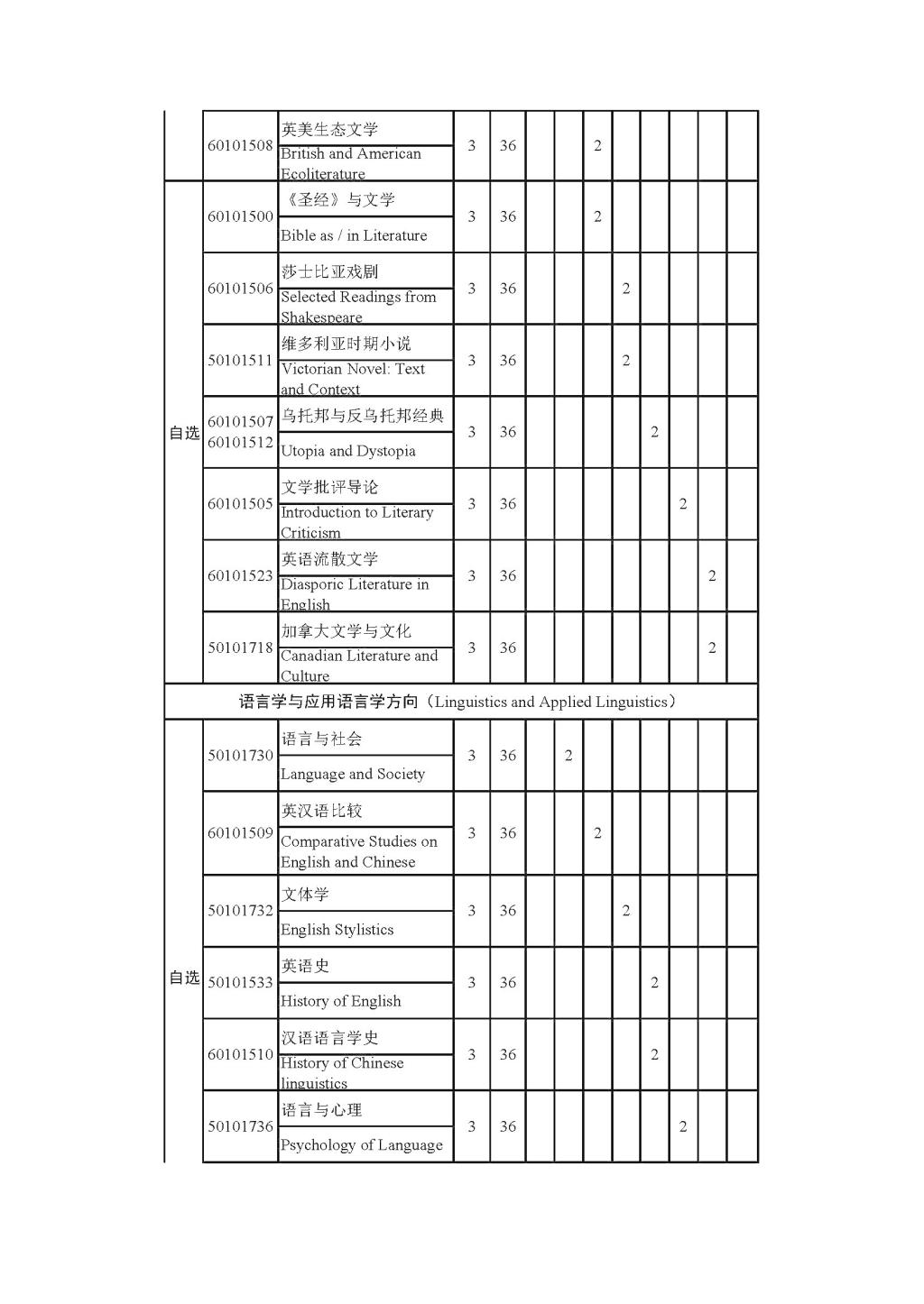 英语文学方向师资