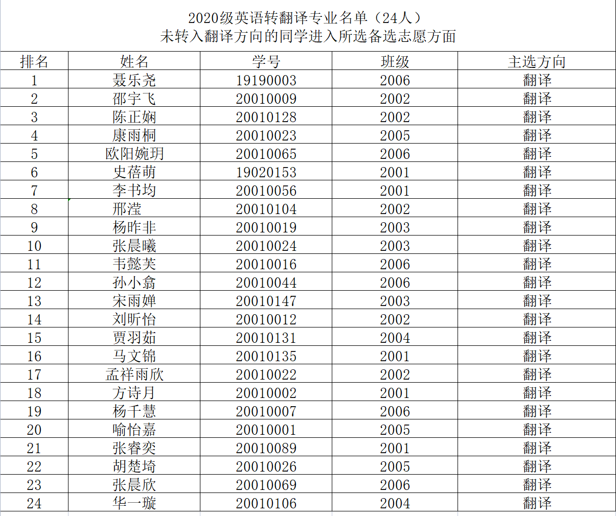 taptap点点体育拟同意以下2020级同学转翻译方向。现将有关情况公示如下: